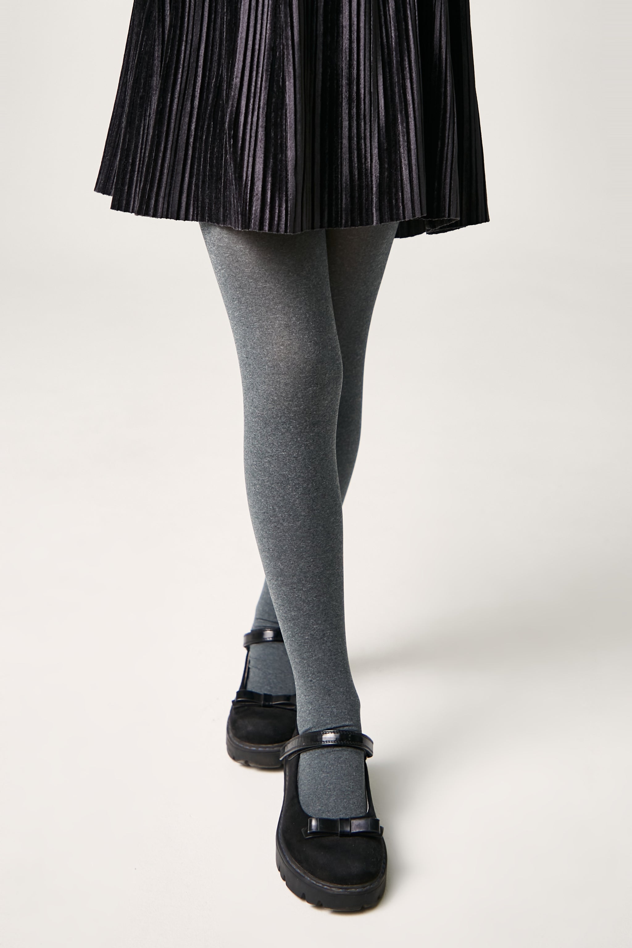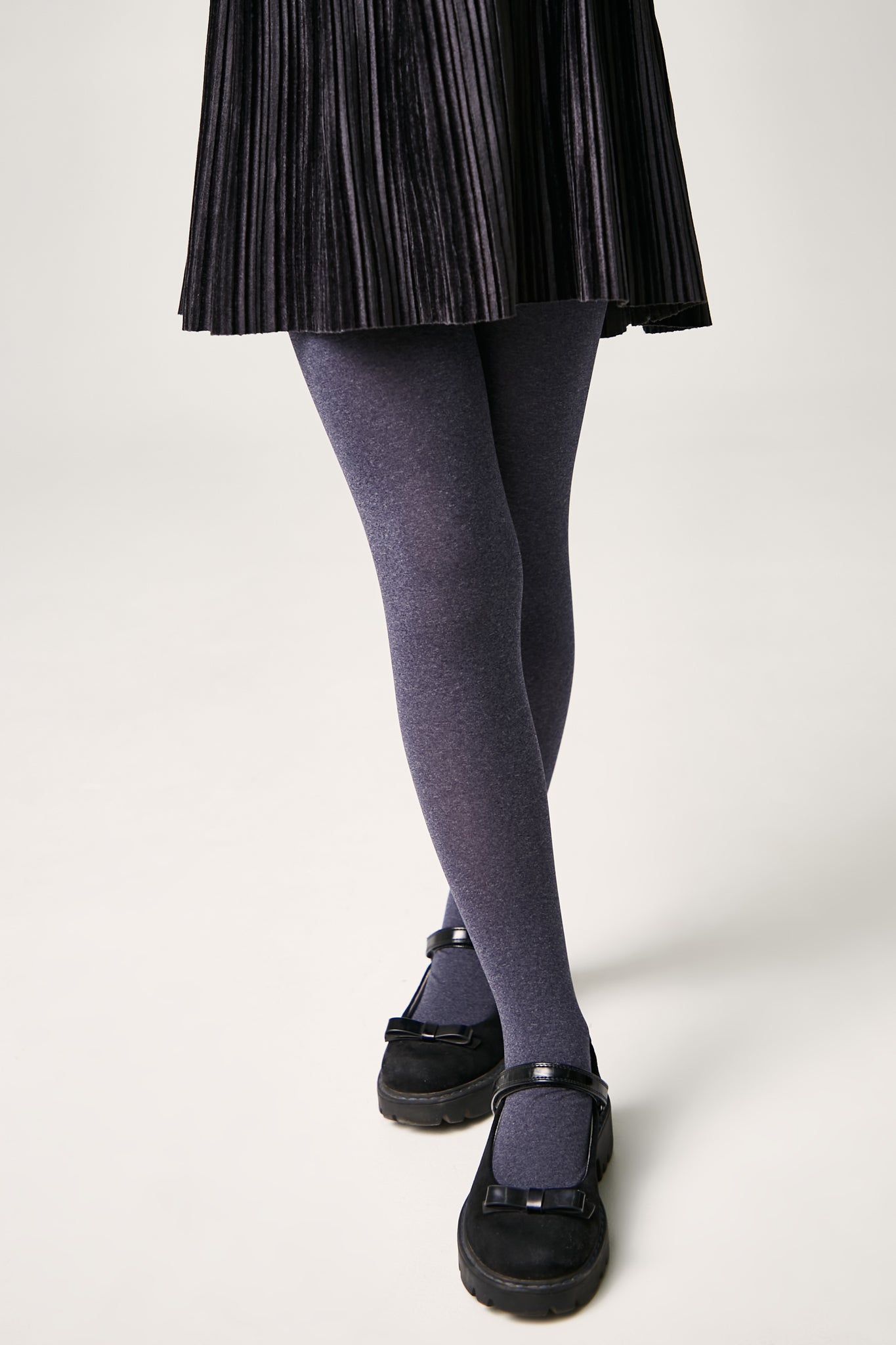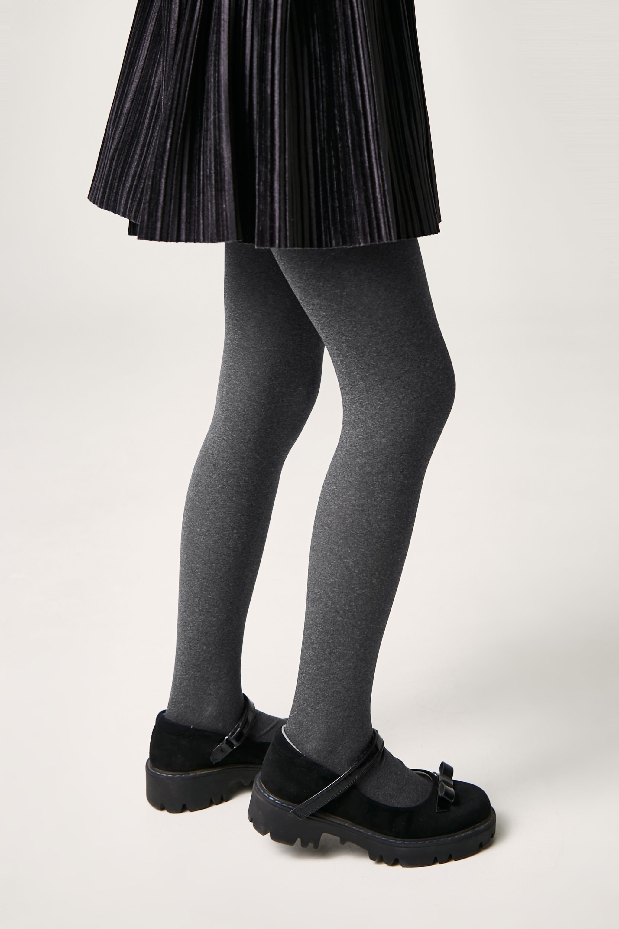 Dense melange tights made of microfiber MELANGE are soft and elastic, stretch well and provide warmth. The comfortable wide waistband keeps the tights securely in place.