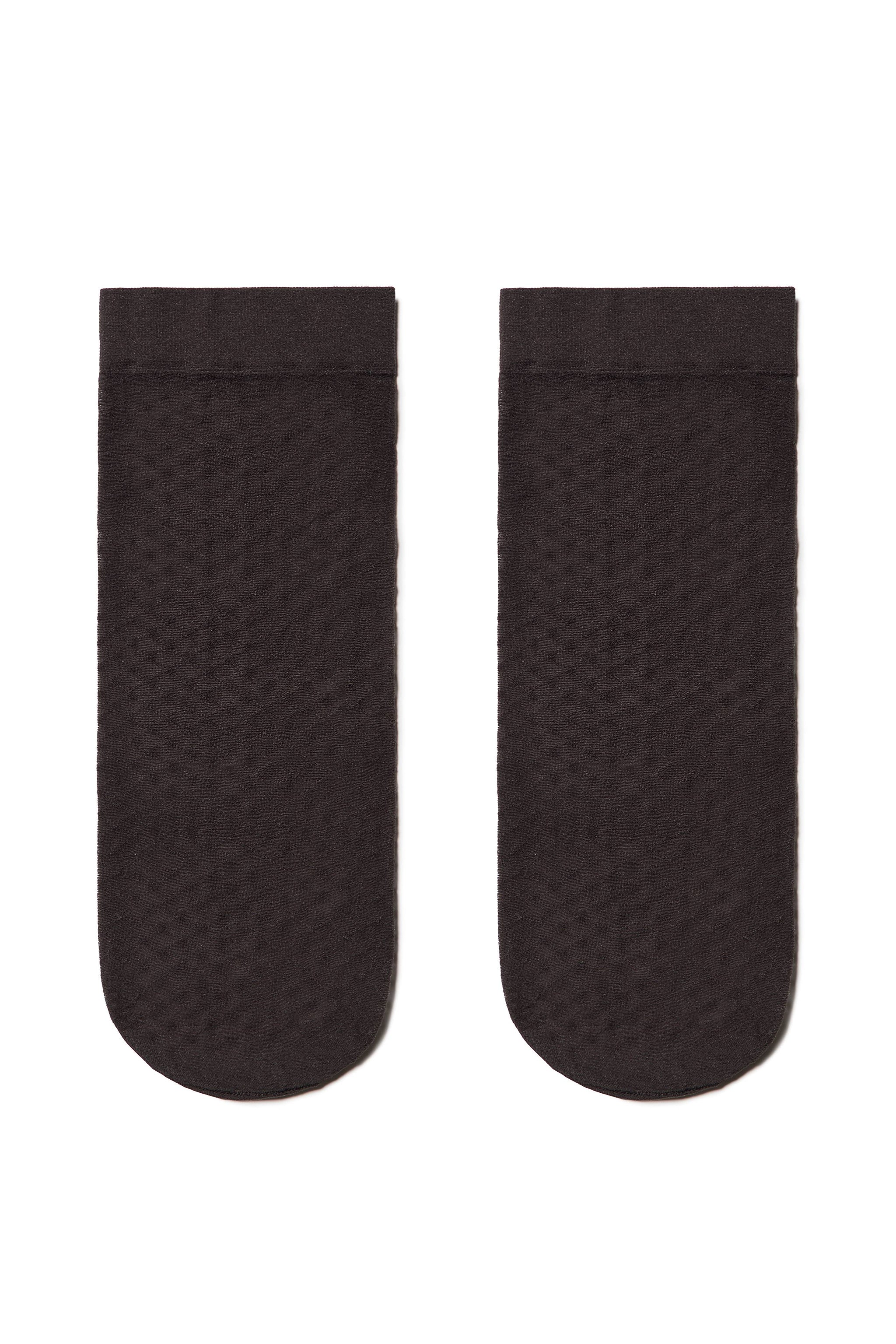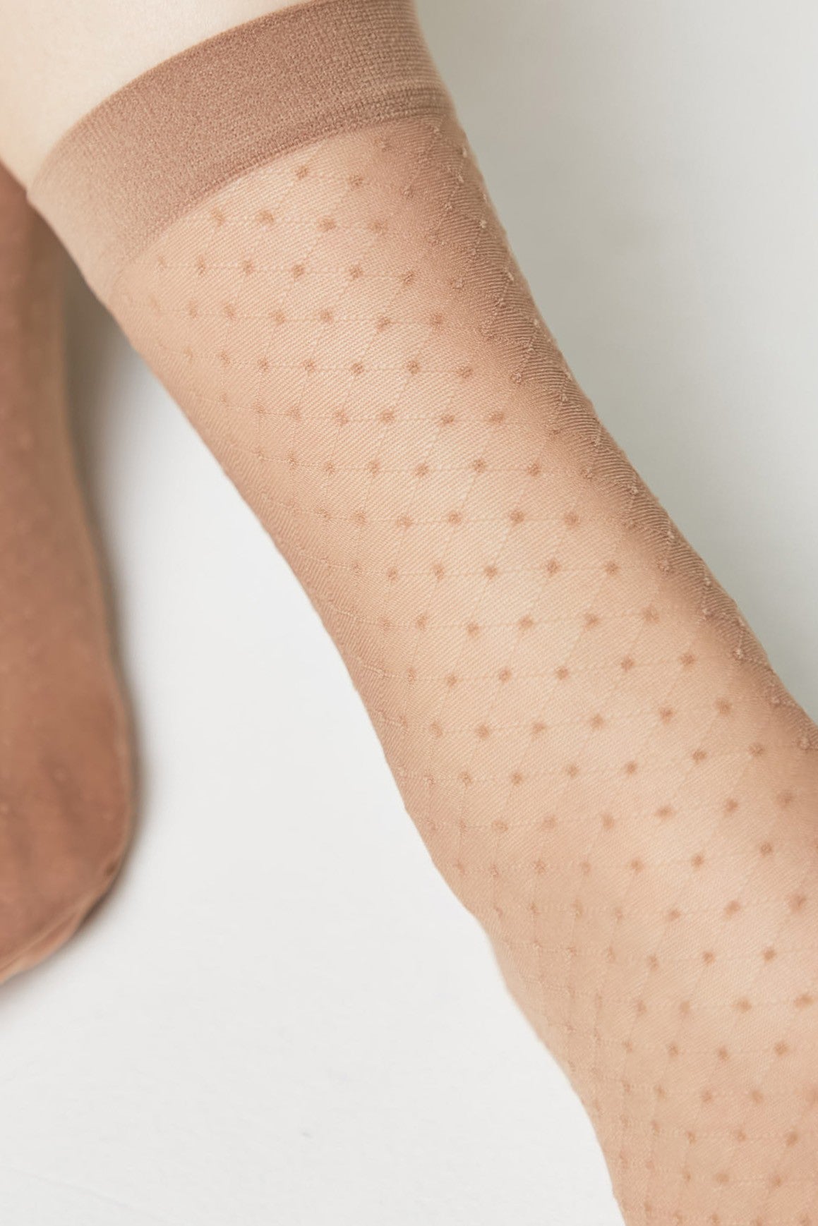 Elastic semi-transparent socks FANTASY with polka dots add a trendy touch to your outfit. Enjoy a comfortable fit and a soft, elastic cuff that keeps the socks in place all day.